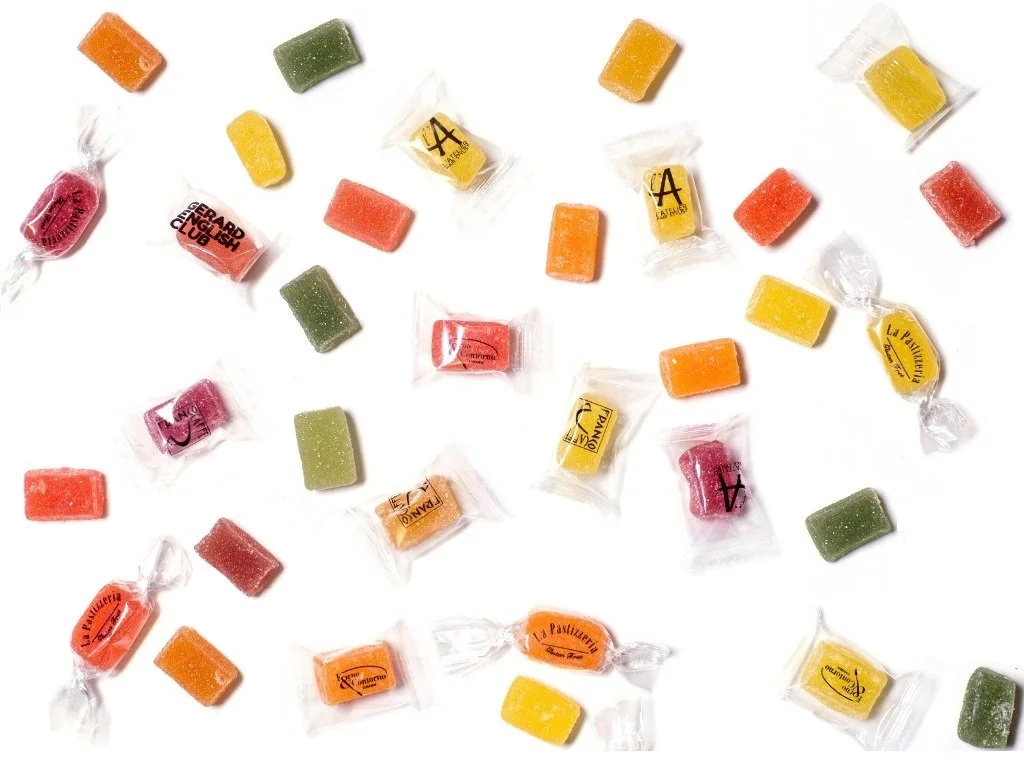 Le nostre Gelées contengono esclusivamente succo o polpa di frutta, oli essenziali, pectina, aromi e coloranti naturali, zucchero di canna.